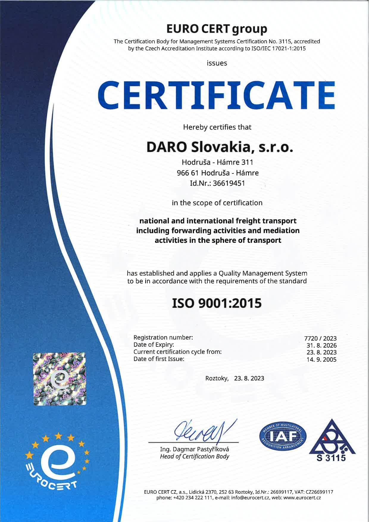 We hold the EN ISO 9001 Quality Management System certificate, which strengthens our position on domestic and foreign markets.